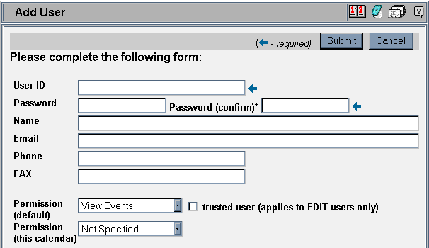 may only modify their own events -- a 'trusted' user may modify anyone else's