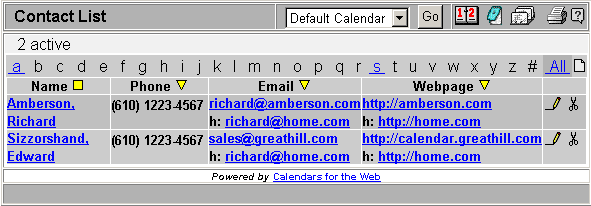 Using the Contact List The contact list is a new optional feature as of version 2.5.0. You may use the contact list in the same way you would use a rolodex on your desktop - except for the fact that everyone in you office can see this contact list unlike the rolodex. The contact list is tightly integrated with the rest of the calendar program using all the same permission settings and template display items.